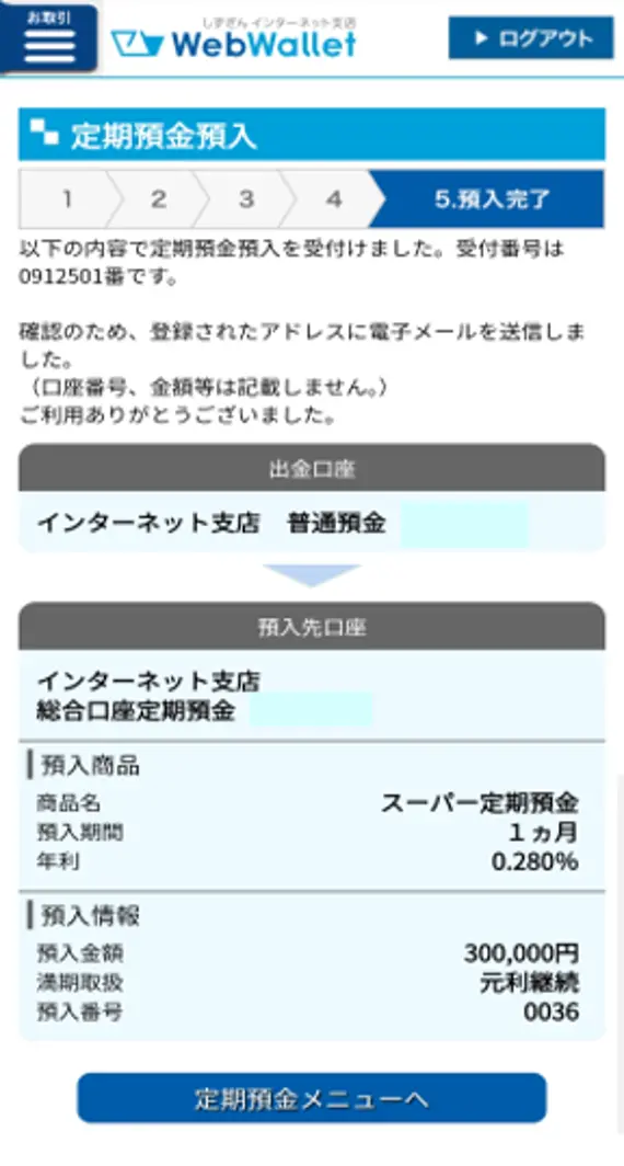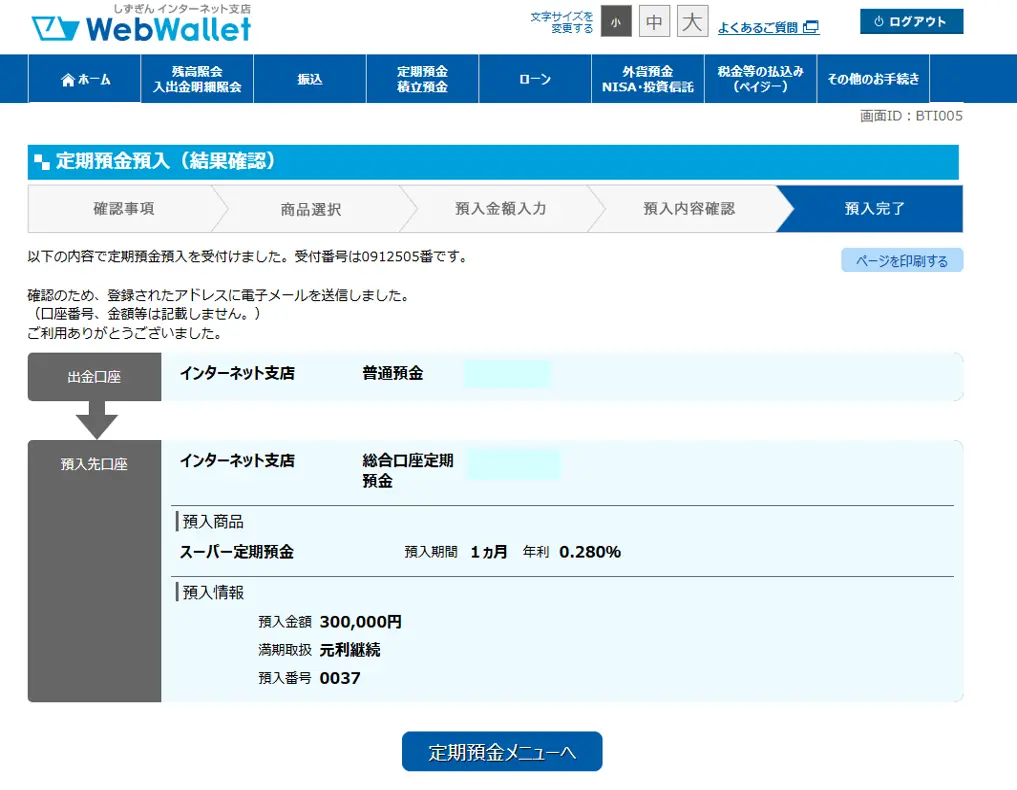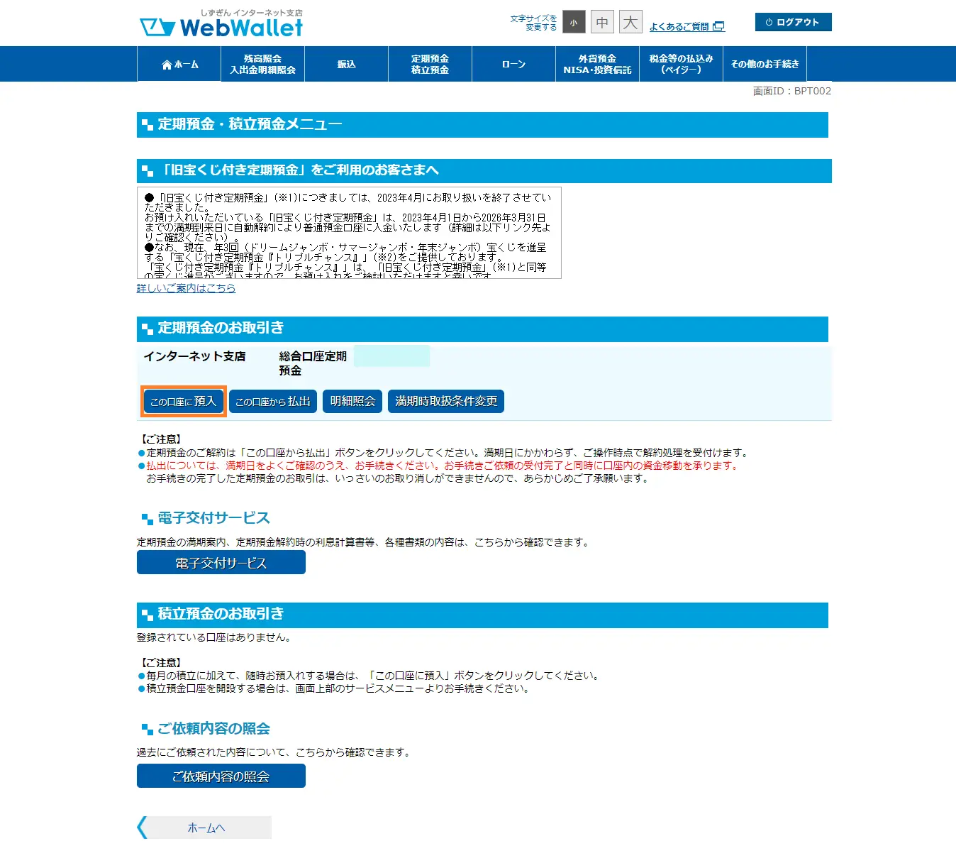 代表口座から、総合口座定期預金へのお預け入れを行うことができます。